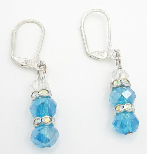Aqua Blue Crystal Earrings - Handmade Beaded Leverback Earrings