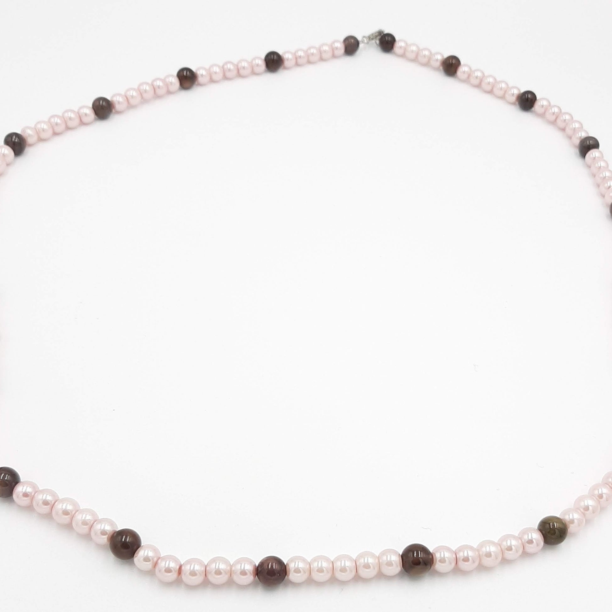 Pink Pearl and Brown Glass Bead Necklace
